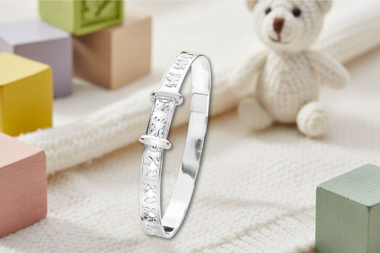 Sterling Silver Teddy Bear Engraved Adjustable Baby & Child’s Bangle