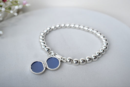 Personalised Silver Beaded Bracelet with Engraved Heart Charm