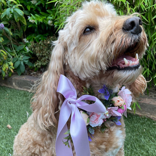 Flower Garland Wedding Dog Collar with Optional Ring Carrier