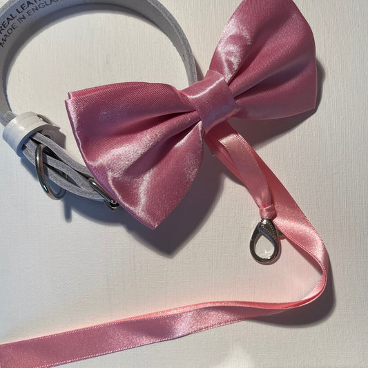 Satin Dog Bow Tie in Pink with Optional Ring Carrier