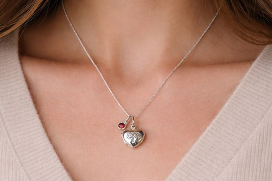 Delicate Sterling Silver Heart Locket with Family Tree Design