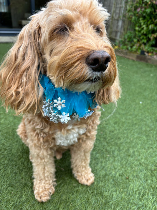 Decorative Silver and Blue Snowflake Christmas Dog Frill