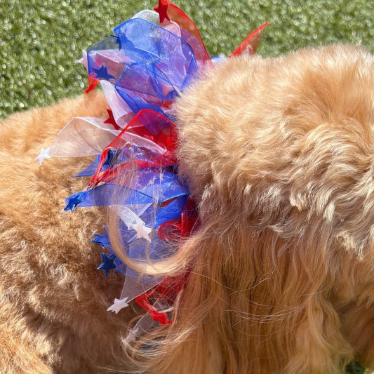 Patriotic Red, White and Blue Tulle and Stars Decorative Dog Frill Collar
