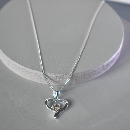 Sterling Silver Paw Print Heart Necklace – Pet Lover Gift Jewellery