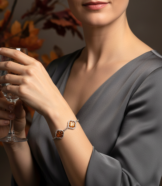 Sterling Silver and Amber Quatrefoil Trio Bracelet
