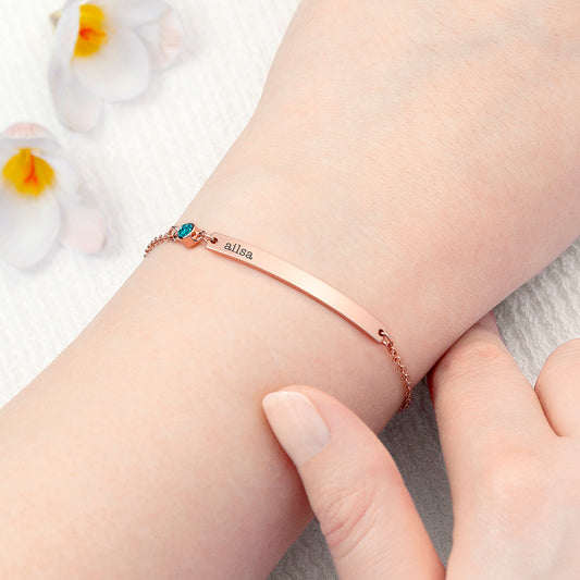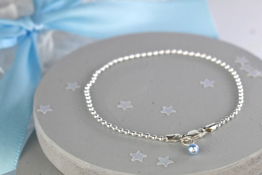 Personalised Sterling Silver Heart Anklet with Blue Crystal