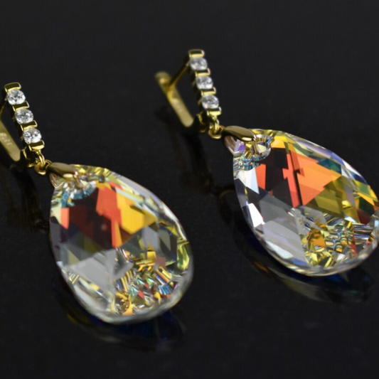 Growing Crystal Drop Earrings – Gold Plated Sterling Silver Leverback