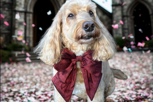 Burgundy-Red Silk Handmade and Hand-tied Sailor Bow Dog Tie with Optional Ring Carrier
