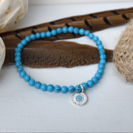 Sterling Silver Beaded Bracelet with Clam Shell Charm