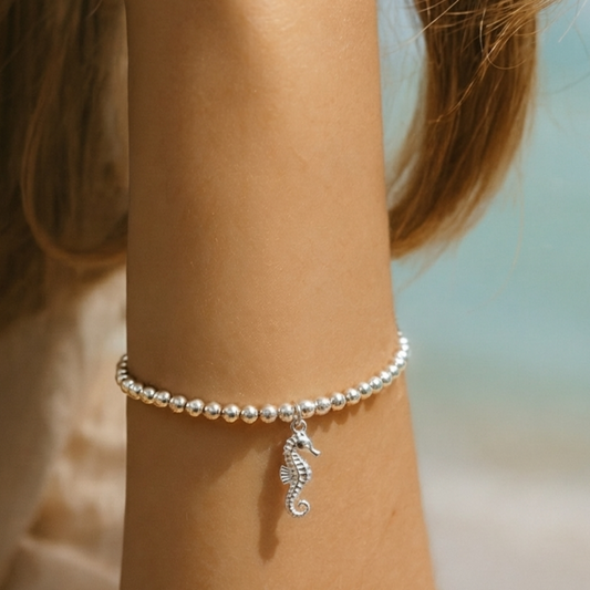 Sterling Silver Beaded Bracelet with Rocking Horse